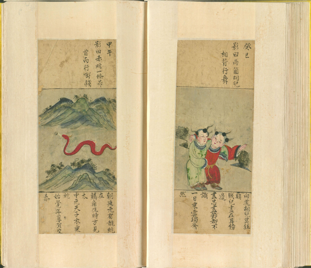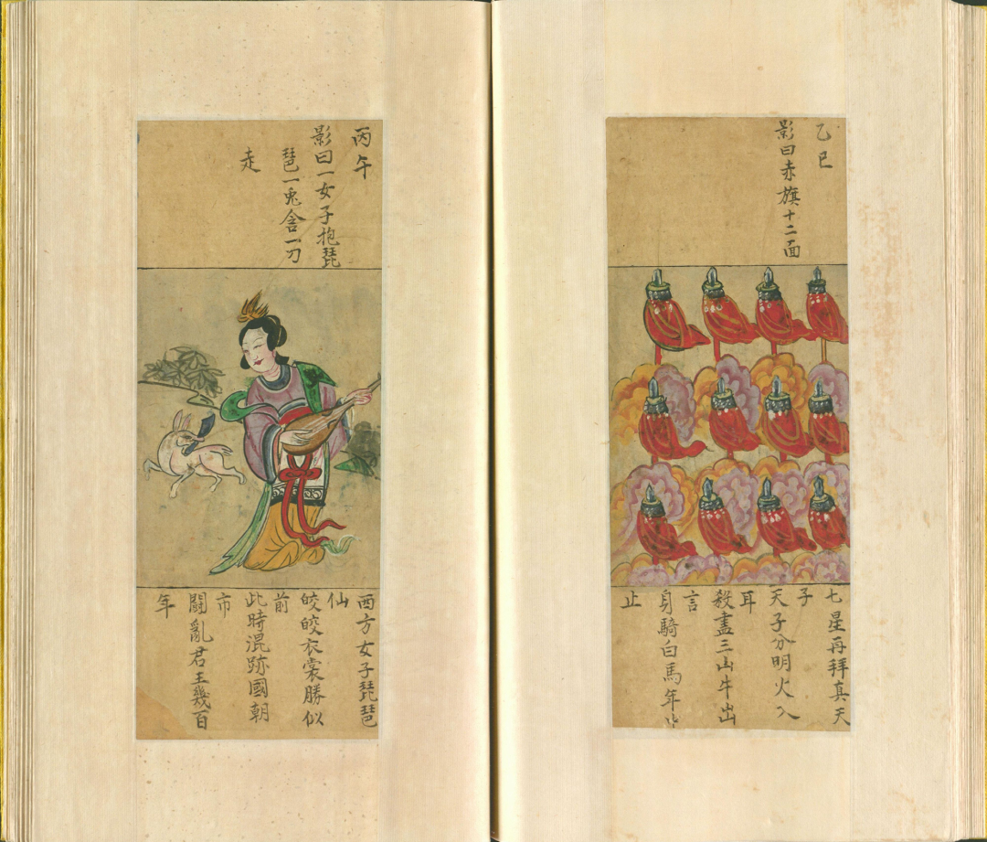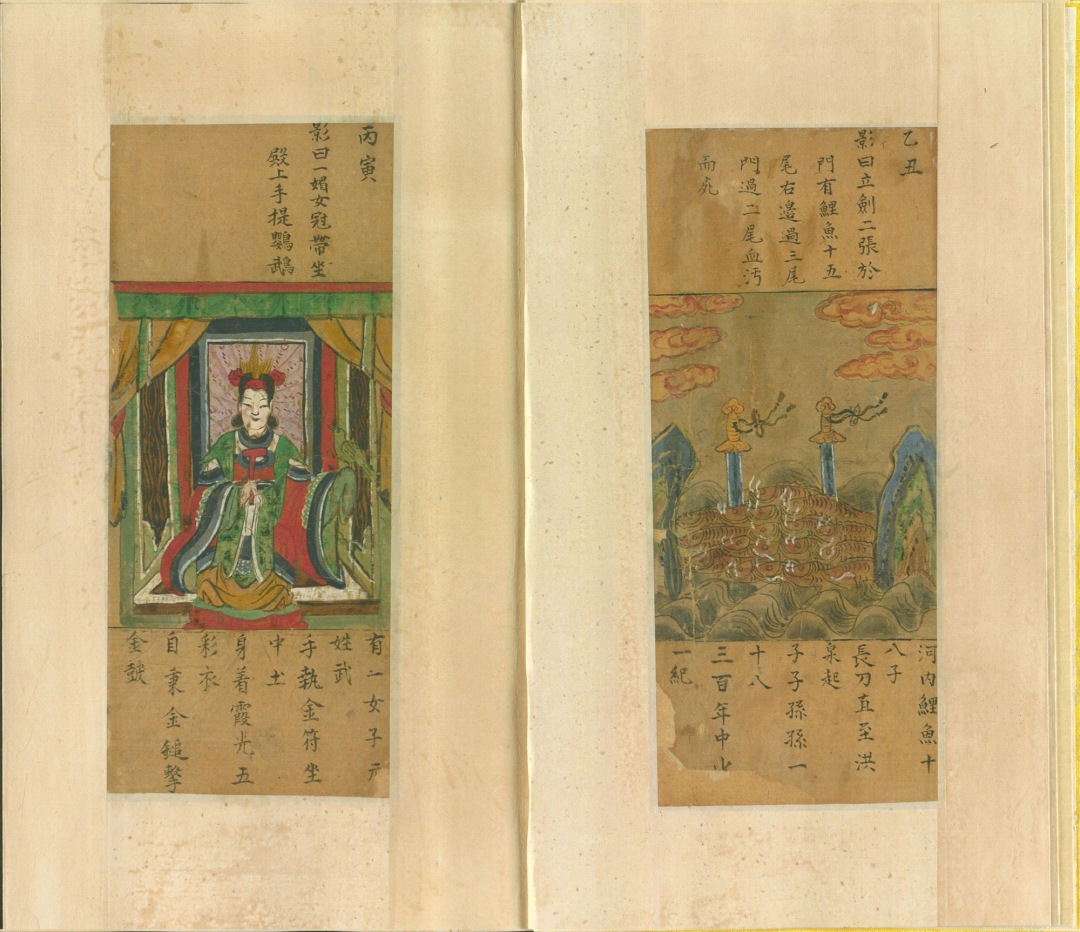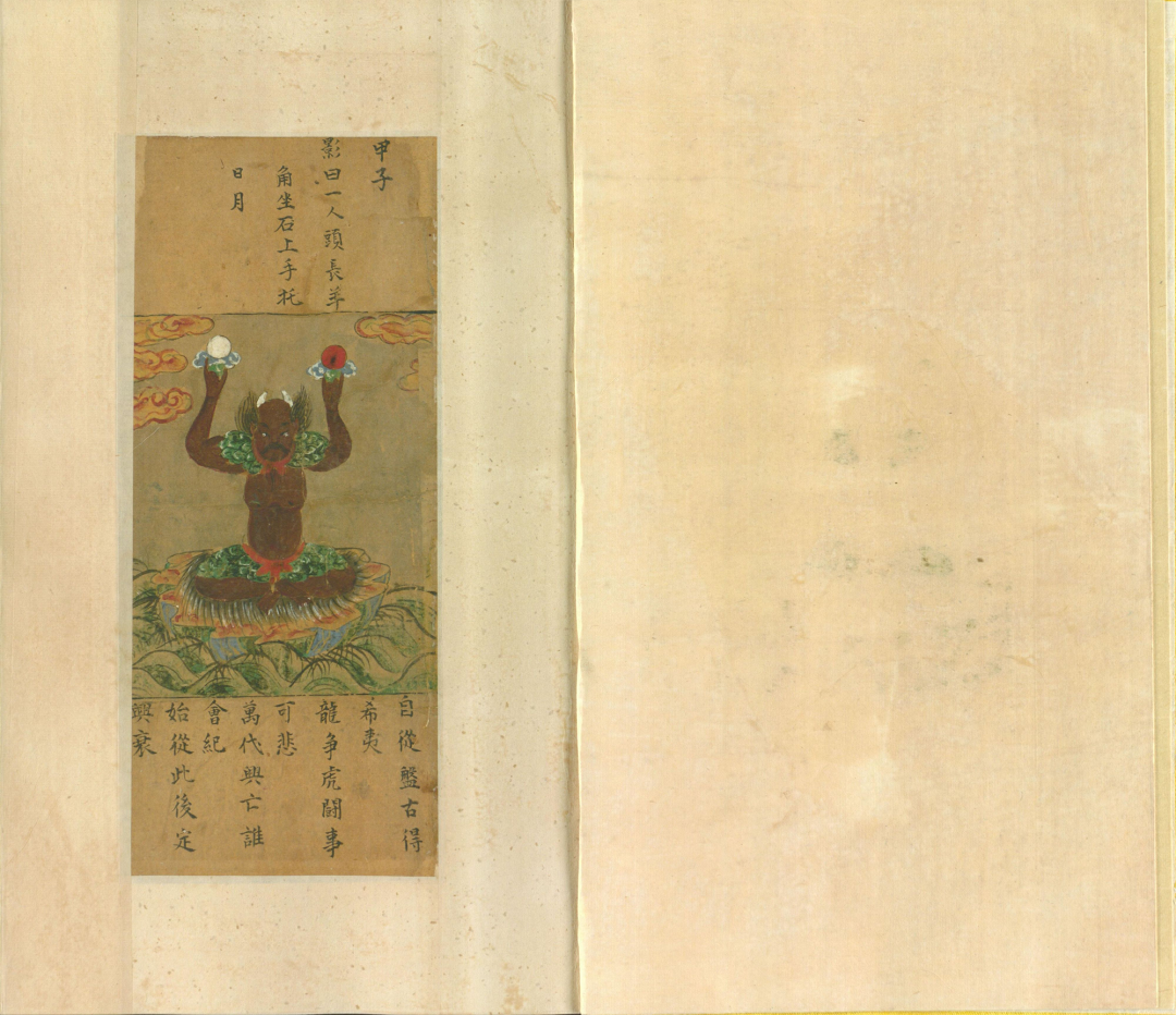 这书里的图影,乍看之下是些古怪画面,实则暗藏玄机。比如那“一人头长羊角,坐石上,两手托日月”,配上“自从盘古得希夷,龙争虎斗事可悲”的谶语,让人不禁遐想,这或许是在暗示着朝代更迭、天下兴衰的宿命。而“日月当空,照临下土”等句,又让人联想到武则天称帝的传奇。