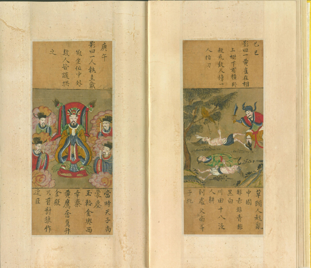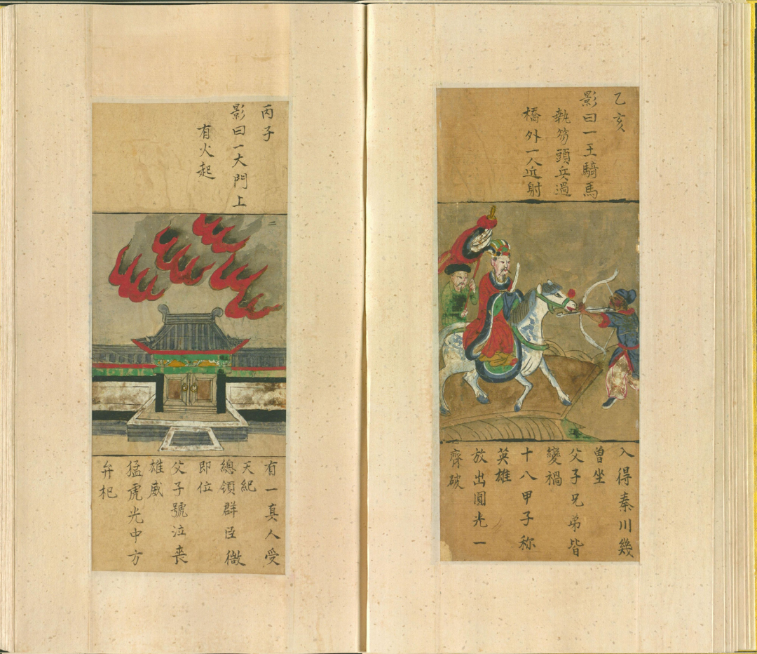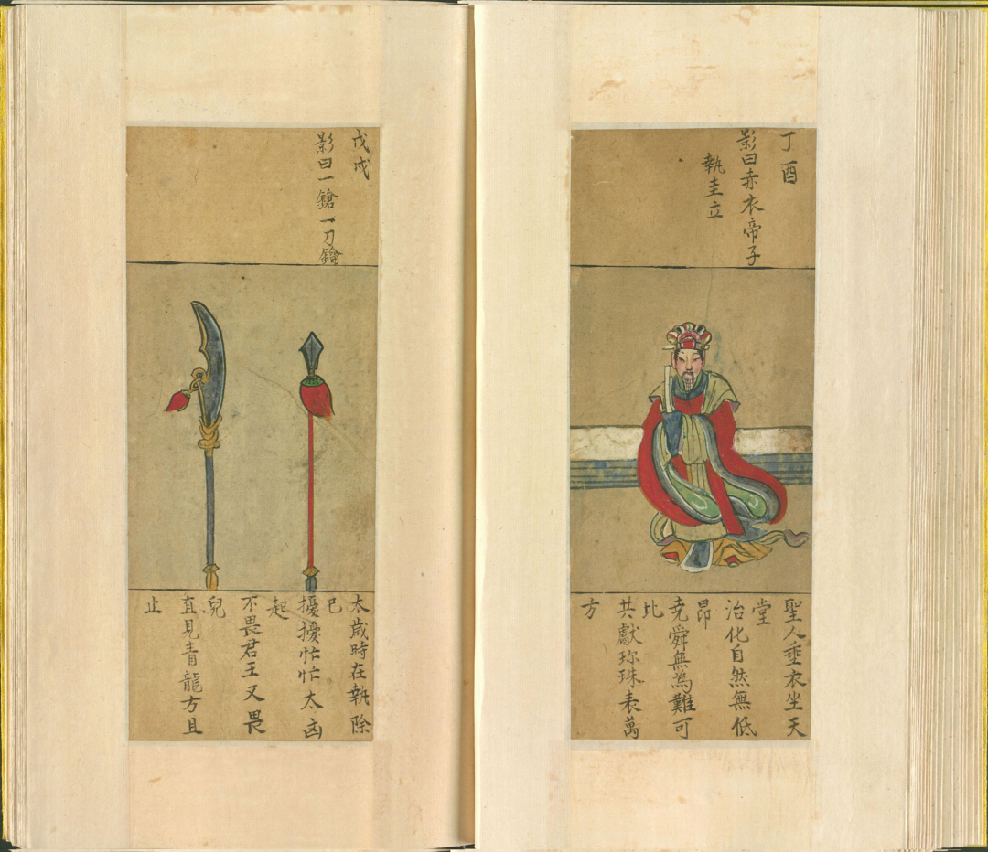 这书里的图影,乍看之下是些古怪画面,实则暗藏玄机。比如那“一人头长羊角,坐石上,两手托日月”,配上“自从盘古得希夷,龙争虎斗事可悲”的谶语,让人不禁遐想,这或许是在暗示着朝代更迭、天下兴衰的宿命。而“日月当空,照临下土”等句,又让人联想到武则天称帝的传奇。